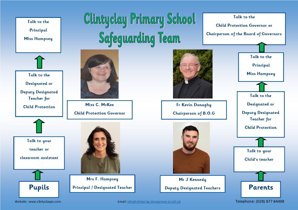 All staff and our governors receive regular Child Protection training and our policy documents are updated regularly to ensure that not only statutory guidelines are met but that in an ever changing world the children in Clintyclay will be safe, secure and happy.